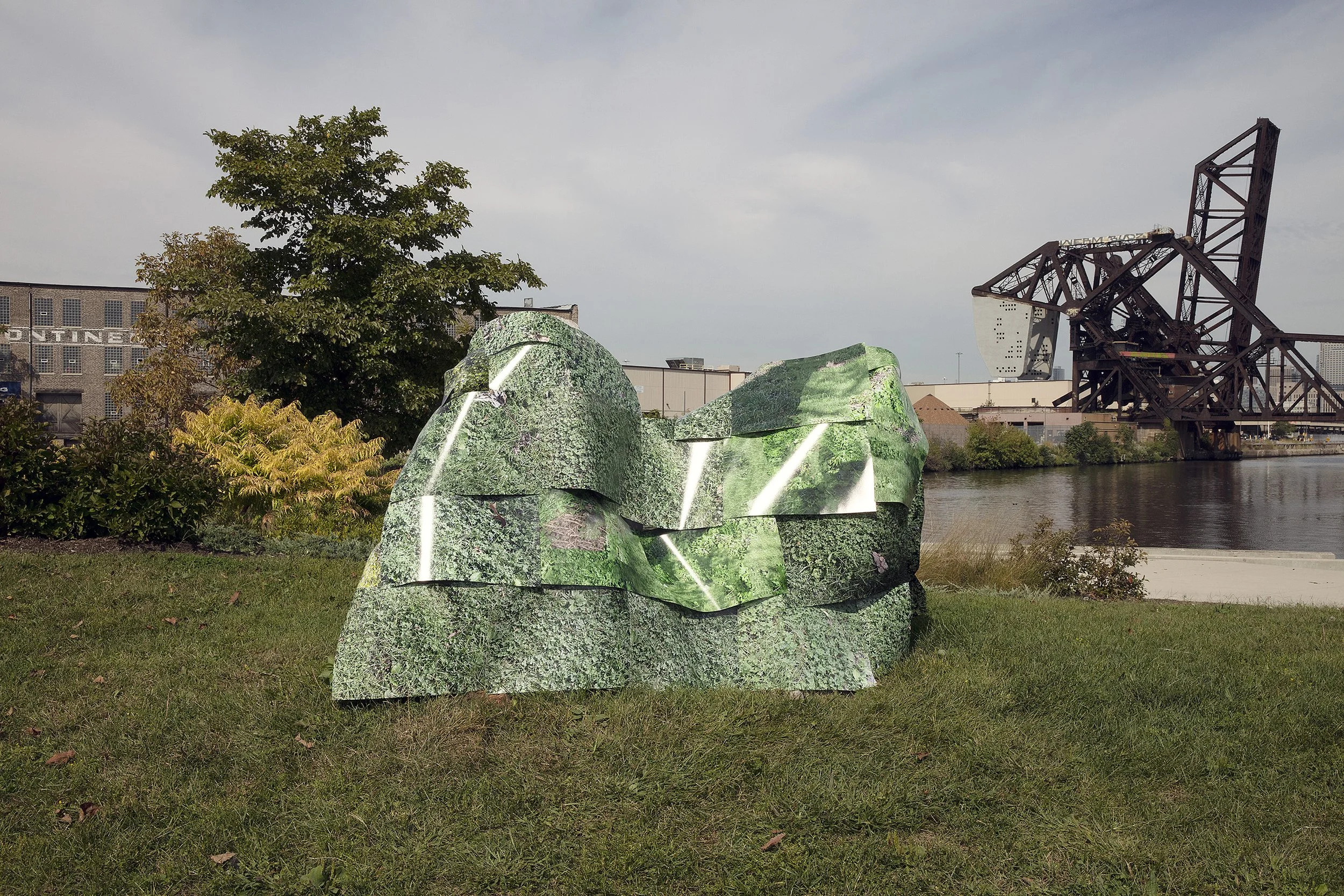 No photoshopping or camera tricks. All images serve as documentation of my attempts to cover, smother and camouflage contested public monuments across the Midwest US. Each monument is photographed and digital files are “healed” with the Adobe Photoshop Spot Healing Tool to remove the monument.